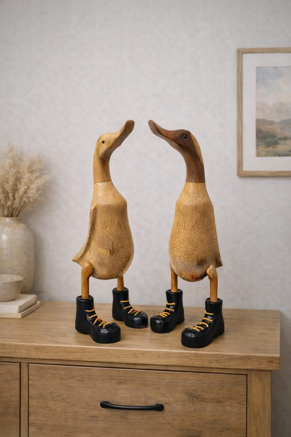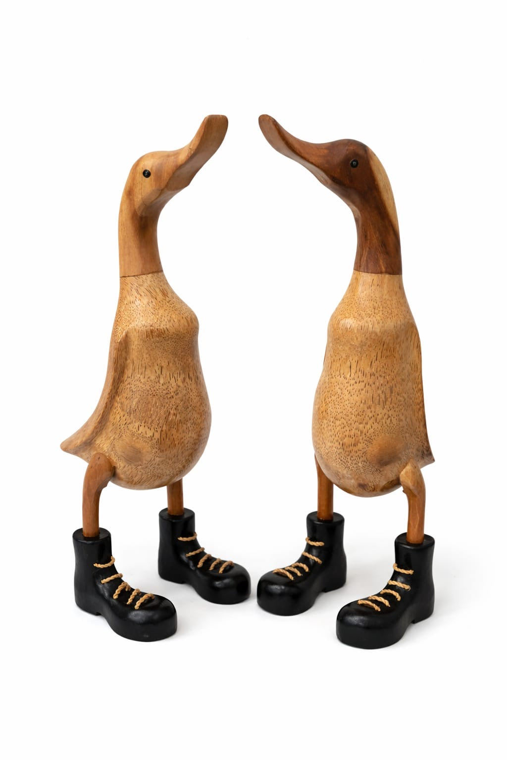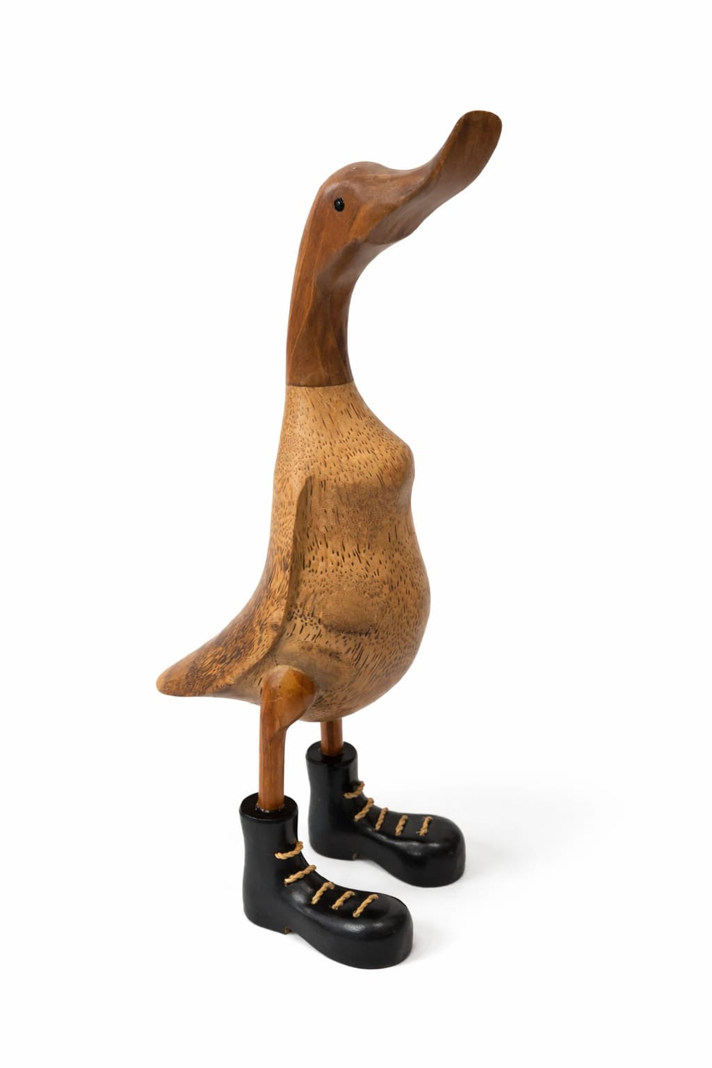 Dekorative Holzente mit Stiefeln – Handgefertigt aus lackiertem Bambusholz (20 × 44 cm)